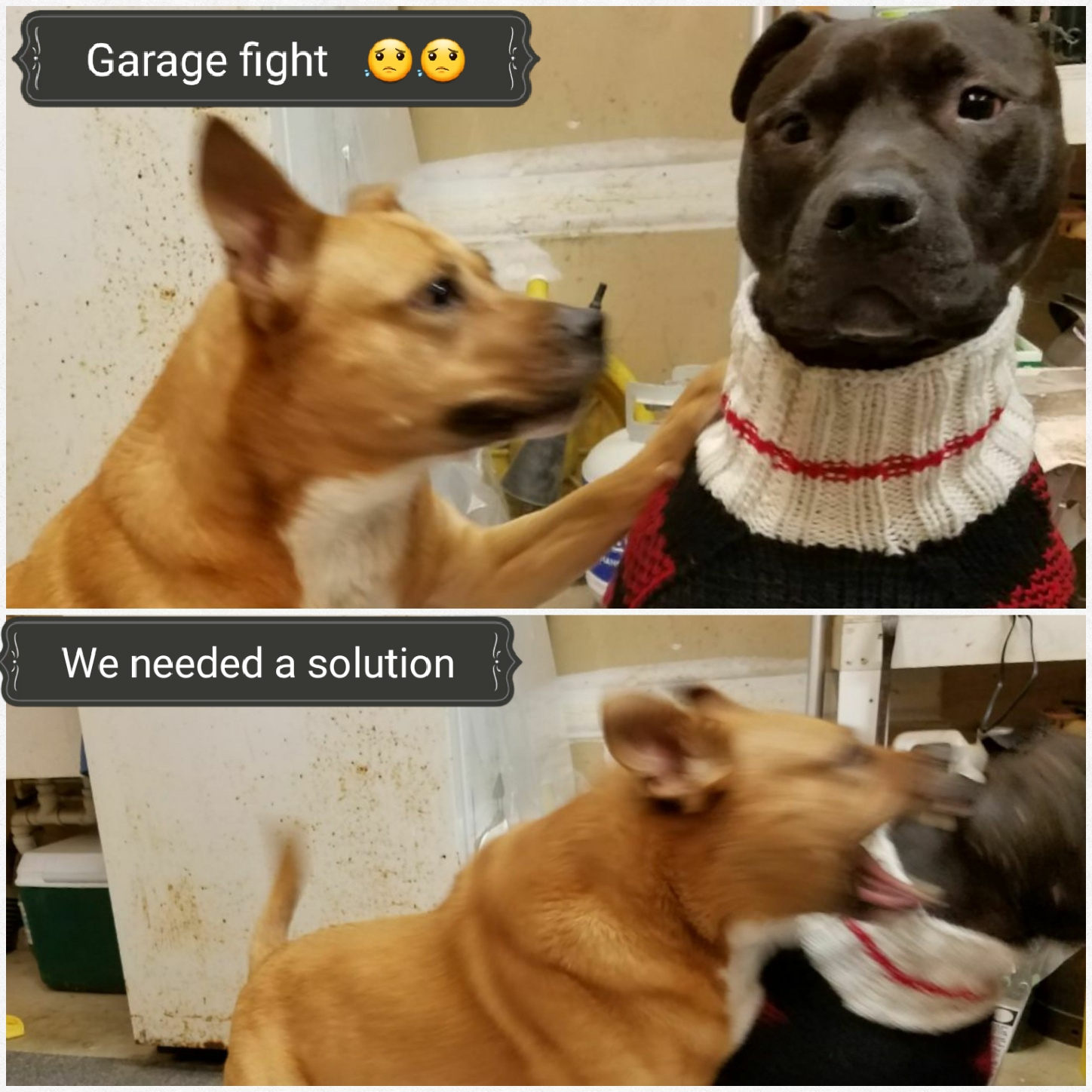 Sasha (orange dog), always anxious and easily freaked out, escalated from snapping and snarling to actually fighting with our newer dog Jax. Each fight also intensified with both animals ultimately sustaining bites and resulting in injuries, vet bills, and the very real fear that they would seriously injure each other. We didn’t know what to do and desperately needed help!!!