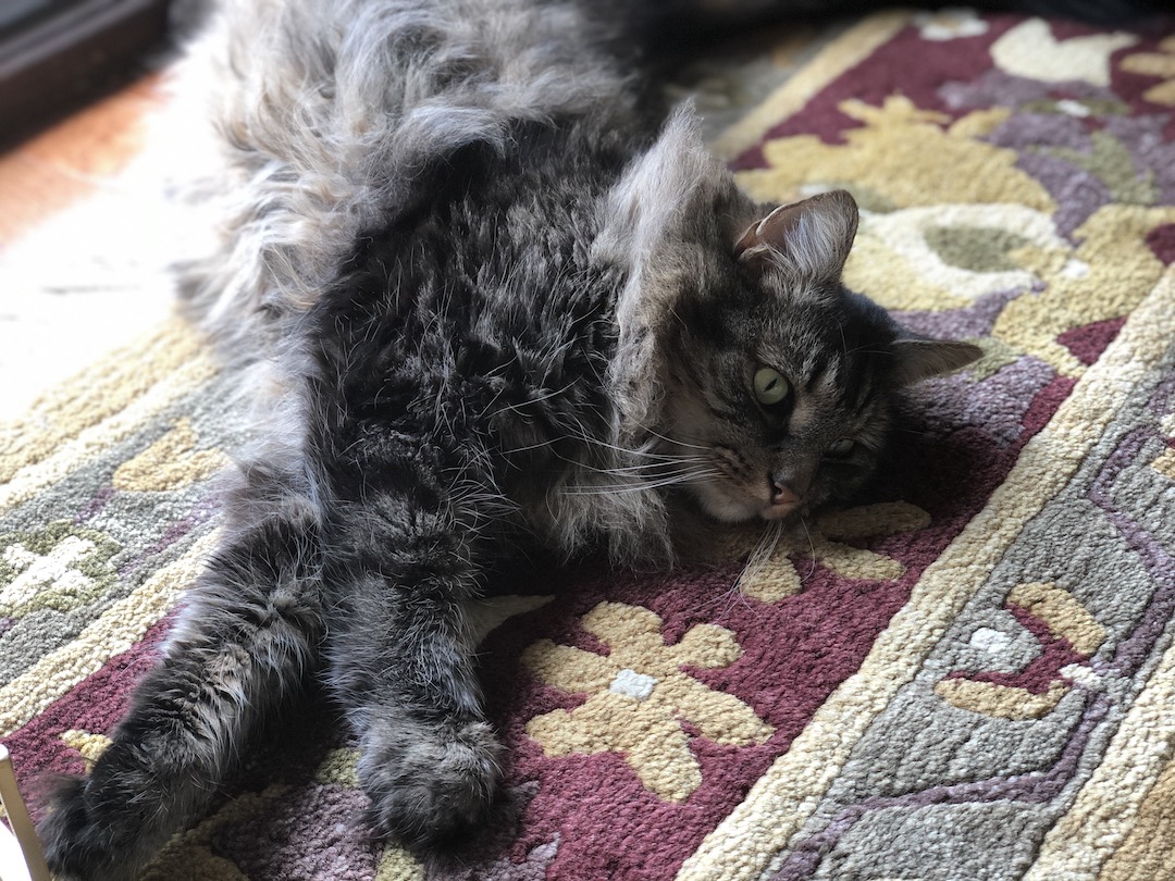The cats are currently able to sit calmly or even nap in the same room with us, just six to ten feet apart. (This probably doesn’t look that impressive, but after living through the horrible fights they used to get into, seeing them calmly ignore each other at this distance is almost unbelievable.) We’re four months into the process and it’s still ongoing, with regular training sessions, as we work toward being able to leave them together unsupervised. Considering we used to have one cat violently slamming against a closed door to try to get to the other, and high-speed chases around the house that ended with drawn blood, this is incredible progress that we once thought could never be possible. It has taken a LOT of patience and consistent, frequent training, but I can confidently say that Mary’s methods work. I would recommend her to anyone having issues of aggression between cats. And, from my own experience, I would recommend not waiting too long; get a strategy that works early on, and save yourself (and your cats!) a lot of stress.