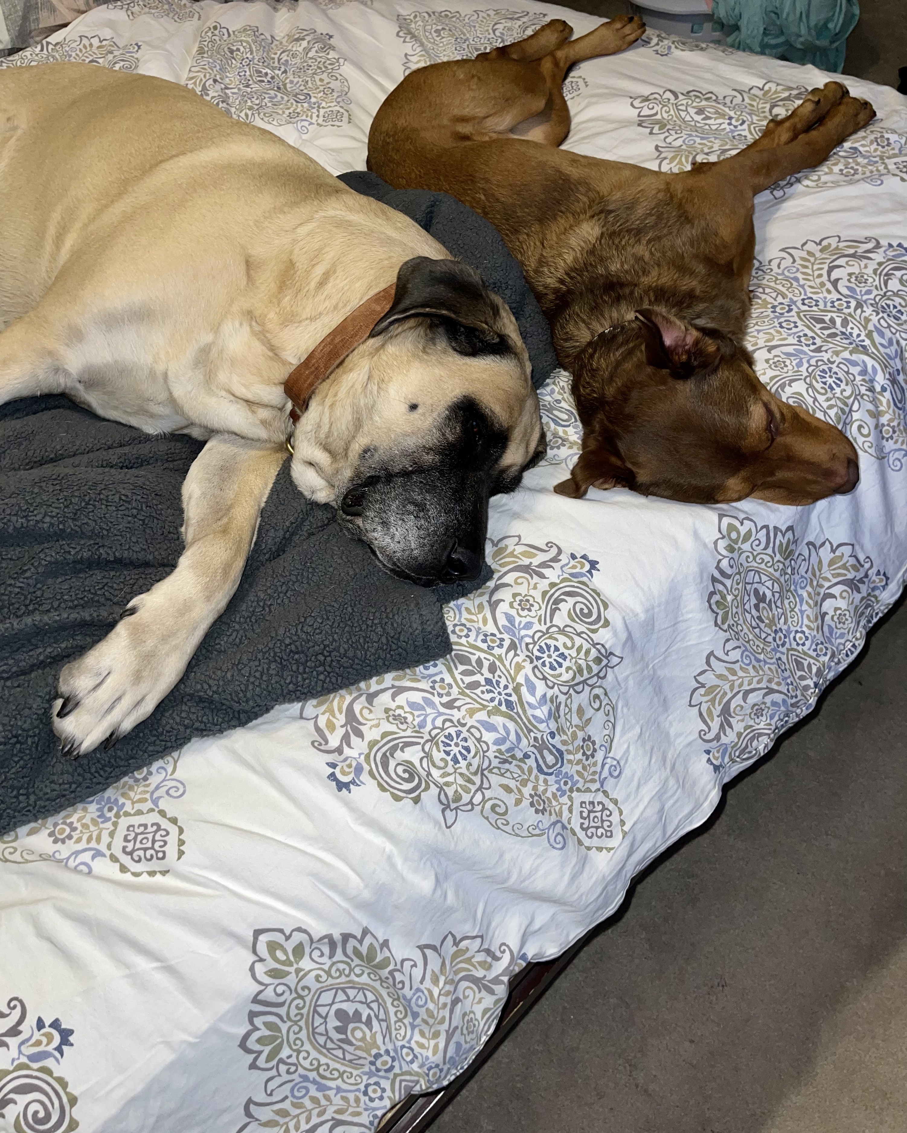 On top of that, Kalliope and Filomena started sleeping next to each other in our bed! Instead of having conflict with her, Filomena goes into her crate when she feels overwhelmed, which I think is a great thing. She feels safe in there and she seems to be more aware of making better choices when she gets "excited" or anxious.